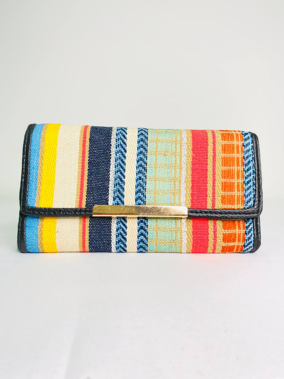 Billetera Bordada, Tejidos Multicolor, Compartimientos Cerrados, Accesorio Artesanal, Organizador Elegante.