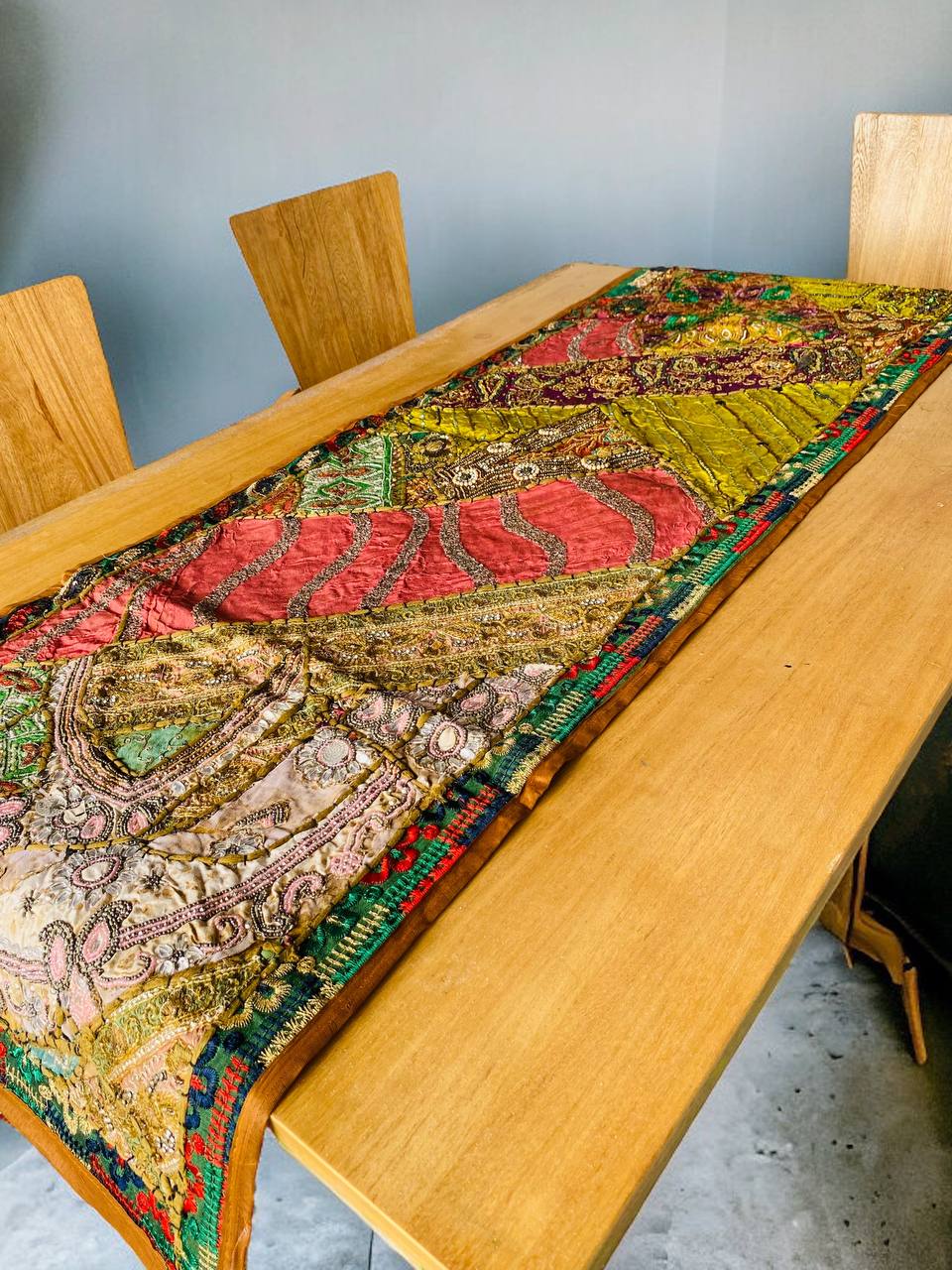 - Diseño Único : Cada camino de mesa es una obra de arte única, decorada con perlas, canutillos y pedrería que se borda a mano.
