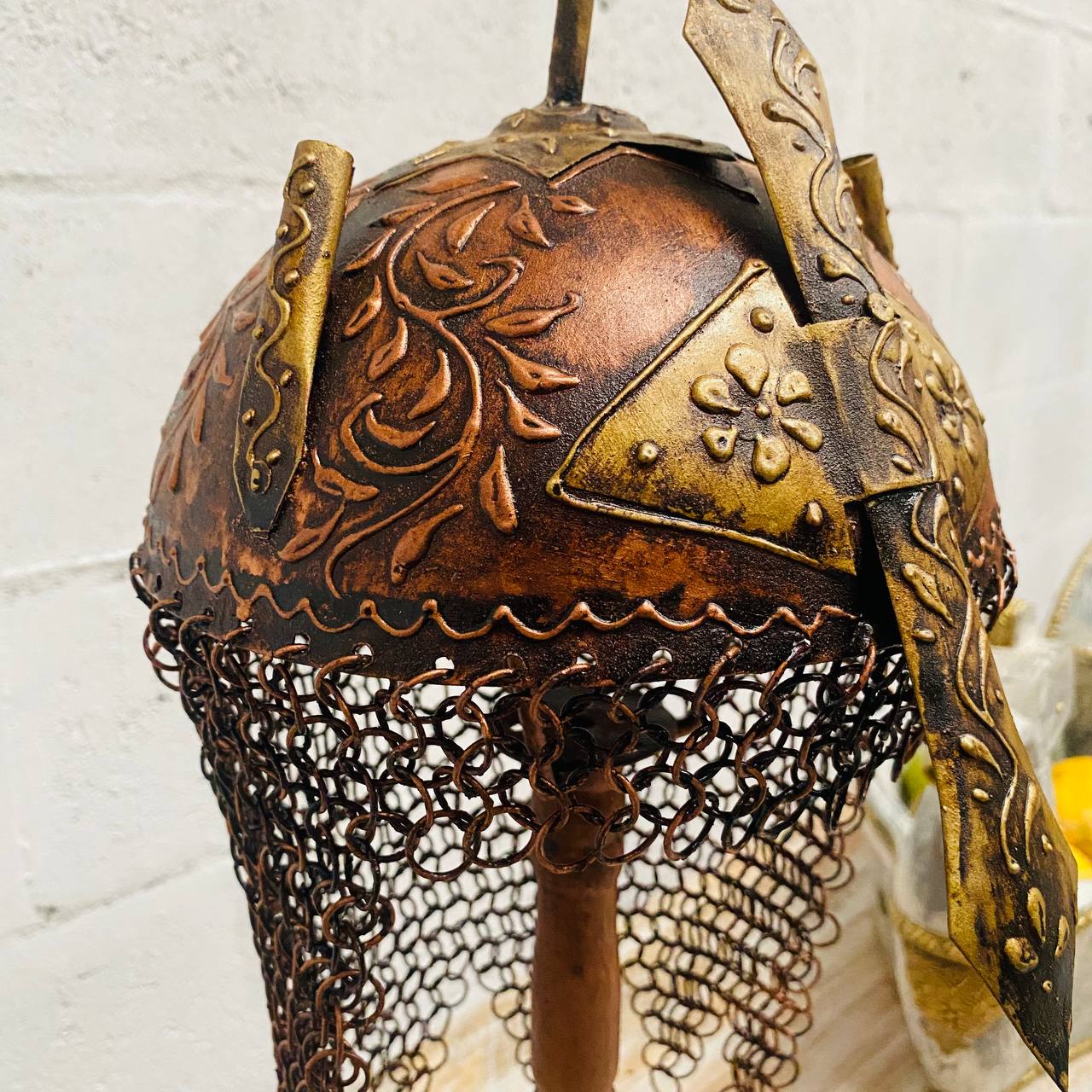 Casco de Guerrero Antiguo "Herencia de Latón" - Pintado a Mano con Detalles Tallados