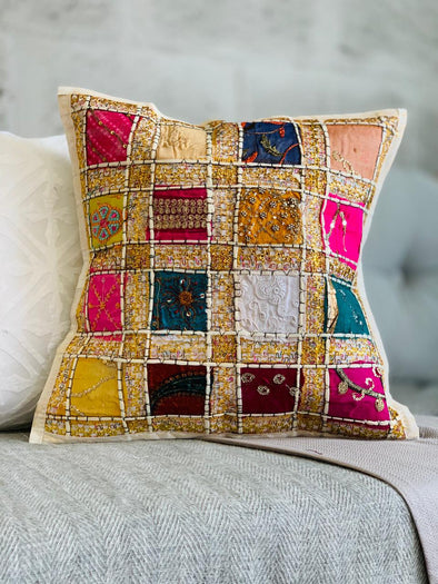 Este forro de cojín artesanal se destaca por su diseño exclusivo de parches de telas bordados a mano, lo que lo convierte en una elección perfecta para aquellos que buscan un toque único en su decoración de interiores. A pesar de no contar con cremallera, su calidad y estilo lo convierten en una pieza distintiva que elevará la estética de cualquier espacio.
