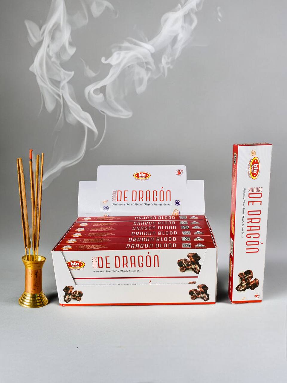 Descripción del Producto: El Incienso Sangre de Dragón es una elección única y poderosa para quienes buscan elevar el espíritu y purificar el ambiente. Este incienso es conocido por su distintivo aroma a resina, que se extrae de un árbol llamado "Sangre de Dragón" y se ha utilizado durante siglos en diversas prácticas espirituales y rituales. Aquí se detallan sus características y beneficios: