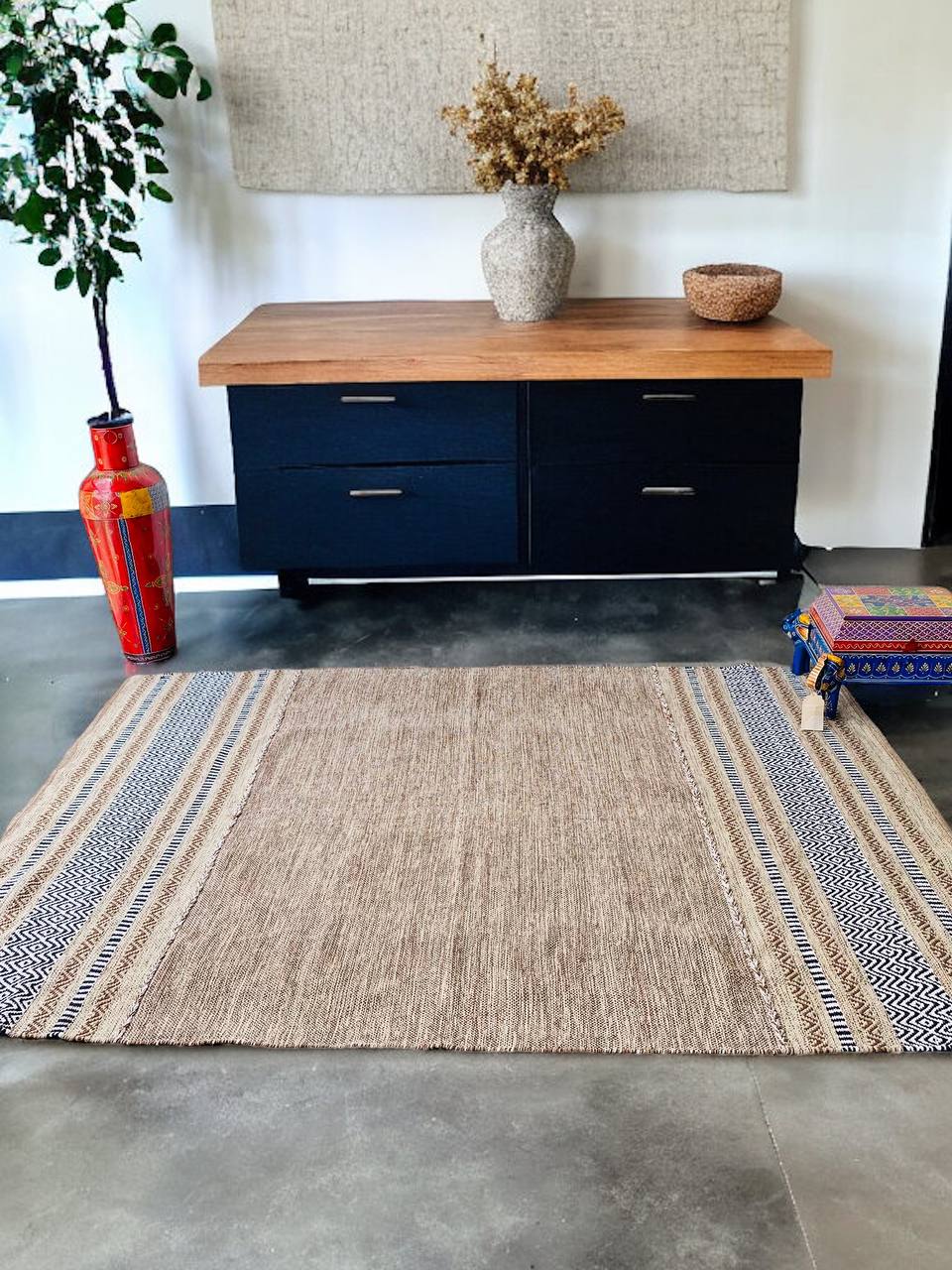 - Diseño Kilim Tradicional: El diseño del tapete se inspira en la rica tradición de los tapetes Kilim.